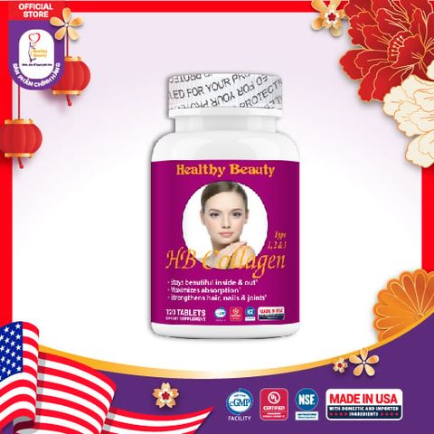 HB COLLAGEN Type 1,2&3 là sự kết hợp giữa Collagen type 1, 3 hàm lượng 833,33 mg với Collagen type 2 hàm lượng 166,7 mg giúp đẹp da, khỏe khớp.