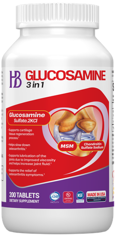 HB GLUCOSAMIN 3 IN 1 là sự kết hợp giữa Glucosamine sulfate với Chondroitin và MSM giúp khớp khỏe mạnh.